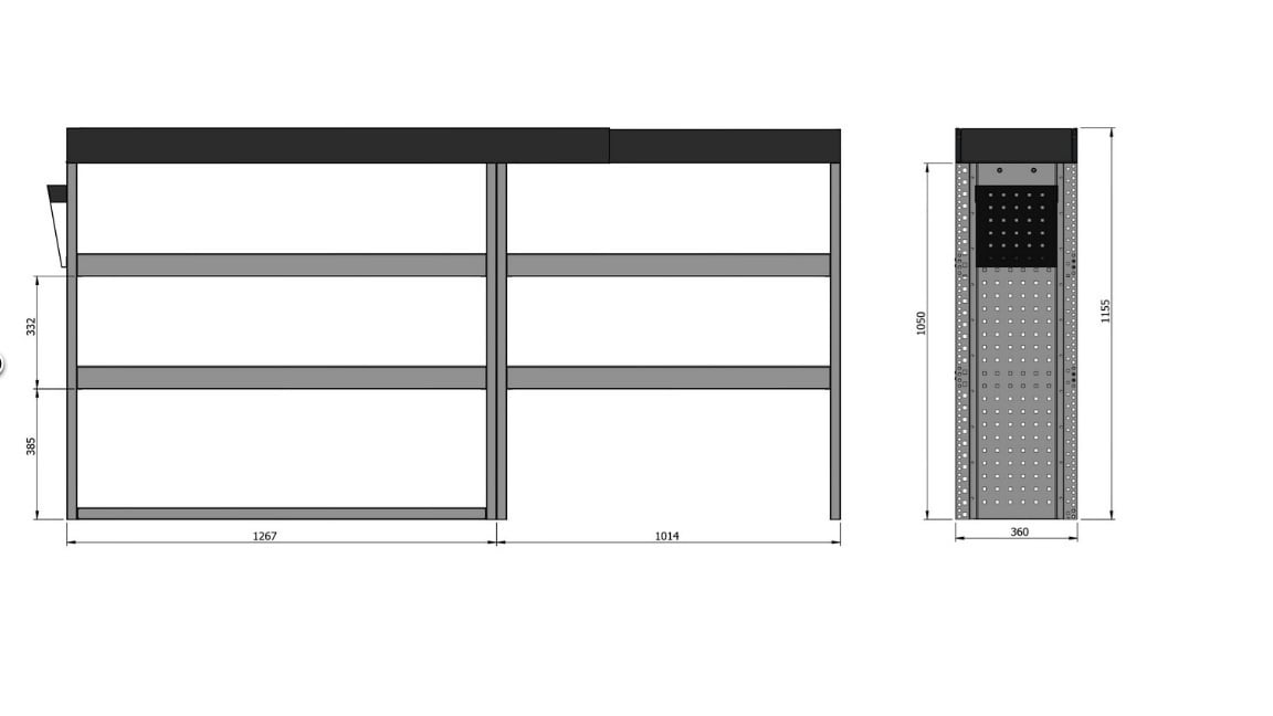 Deze bedrijfswageninrichting combineert stalen staanders voor maximale stabiliteit met lichte aluminium componenten voor optimale gewichtsbesparing.